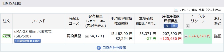 旧NISA口座が終わるので少しずつ投資信託を移動していこうと思います。