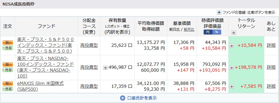 - eMAXIS Slim 米国株式(S&P500) 100,000円