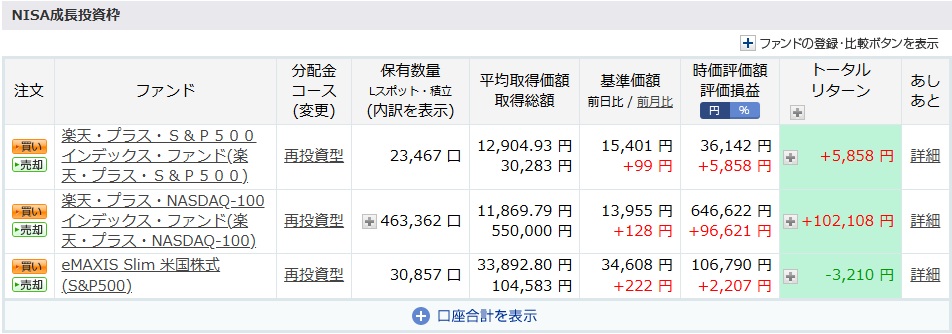 - 楽天・S&P500インデックス・ファンド(楽天・S&P500) 747円